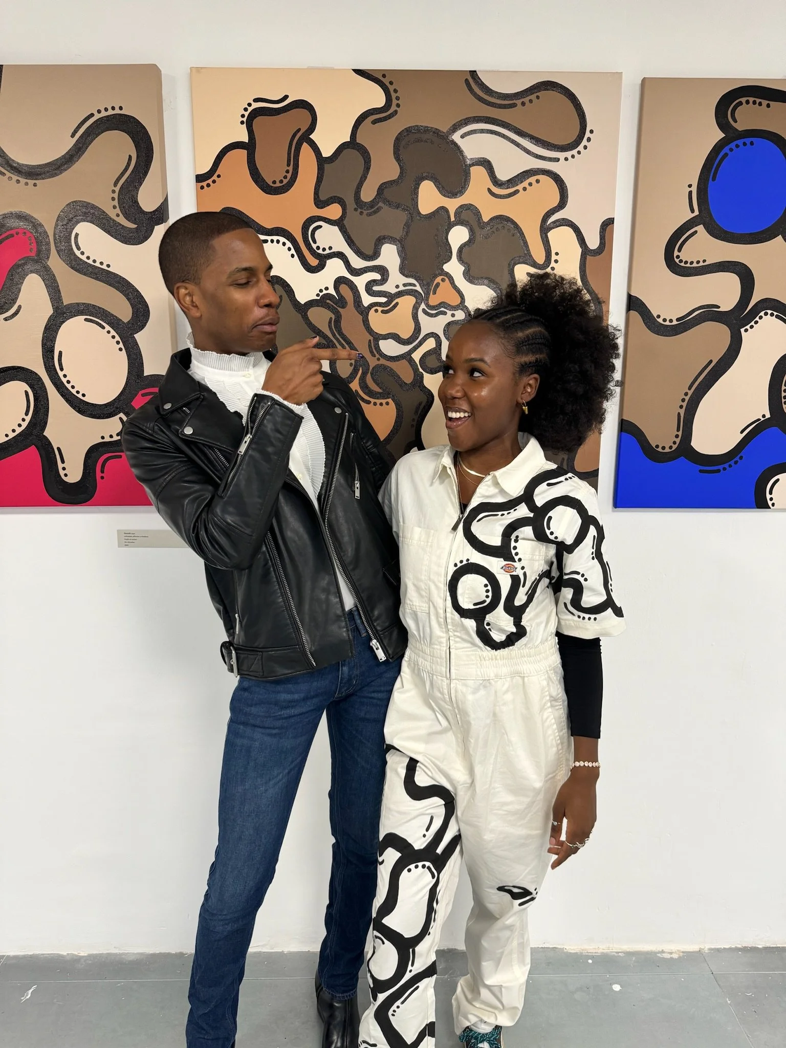 The shapes are encased in bold, dark strokes giving them definition and allowing each colour to be uniquely appreciated. These outlines are further embellished with small, circular dots that gives each piece the Patendoyart signature.